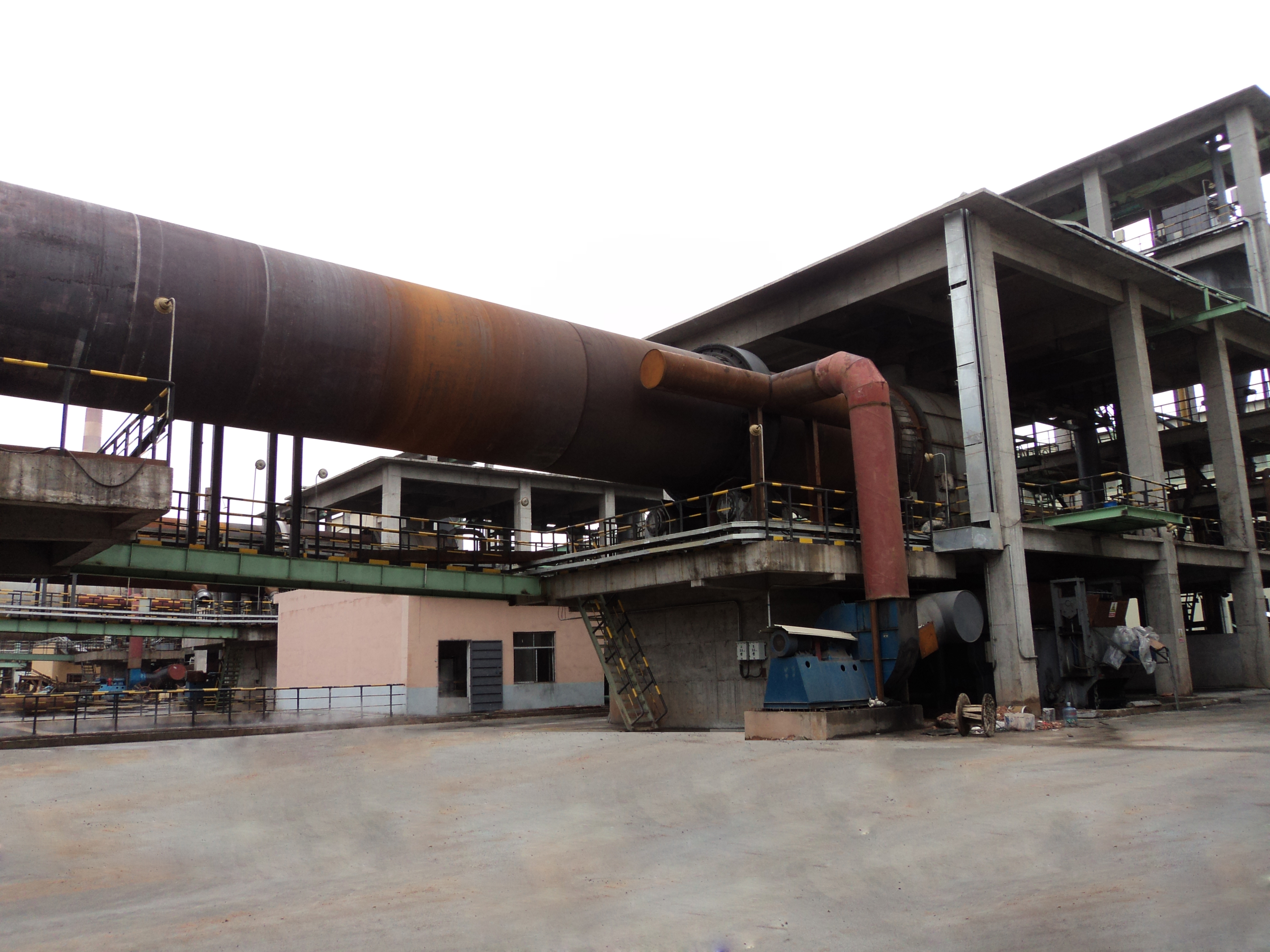 設(shè)備結(jié)構(gòu)緊湊,運行操作簡單,維護(hù)方便。加熱爐外面有保溫罩,與筒體之間形成加熱腔室,使筒體受熱均勻,同時減少了熱量散失。尾端為托輪支撐,接觸面積大,熱漲量能夠及時釋放,減少筒體受內(nèi)應(yīng)力的損害。